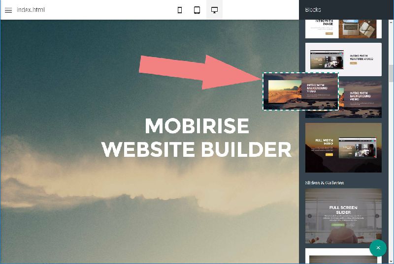 Mobirise has provided for website developers a growing library of modern blocks which can be used either partially or in full for every website developed through the builder.