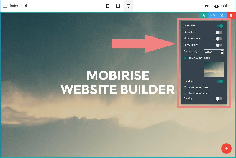 Tired of constant hitting the preview button to see your results? With Mobirise you instantly see what’s been changed and how exactly it will look like – right in the Builder window freely switching between Mobile, Tablet and Desktop view at any time.
